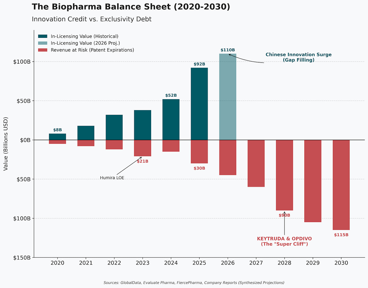 Some structural issues still exist - ten years to get a molecule to clinic, regulators that need a shot in the arm, and (I’d argue) a negative EV on most new programs. But Big Pharma isn’t stupid. Patent cliffs are looming, pipelines are thinning, and the market is hungry for new assets. So the industry did the rational thing: it looked east. The new playbook is simple: license clinical-stage assets from China, and run them globally.